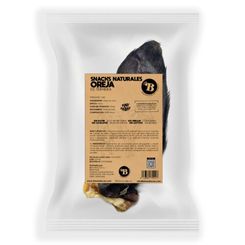 Nuestra oreja de vacuno para perros es un snack natural deshidratado ideal para mantener a tu peludo entretenido mientras cuida su salud bucal. Elaborada únicamente con vacuno 100% natural, sin conservantes, colorantes ni aditivos artificiales, este snack deshidratado para perros ofrece una alternativa mucho más saludable que los snacks industriales tradicionales.