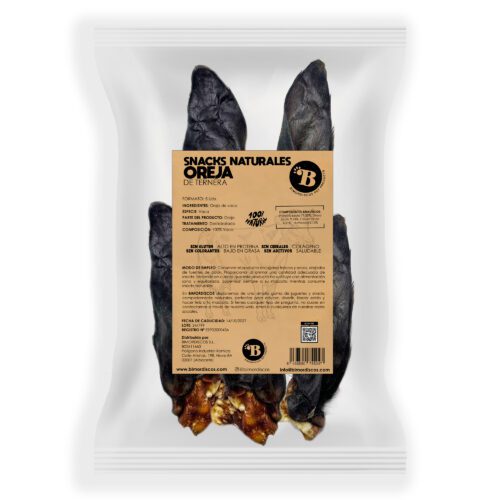 Gracias a su textura firme y su forma irregular, la oreja de vacuno proporciona una masticación prolongada, perfecta para perros medianos y grandes, así como para masticadores potentes que suelen destrozar snacks más blandos en segundos. Además, su dureza ayuda a que el perro libere estrés mientras satisface su necesidad natural de morder.